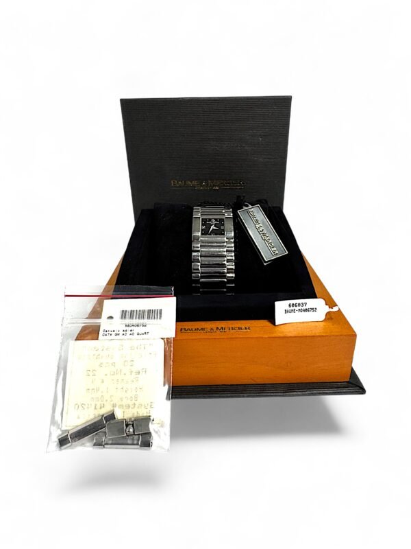 Collector’s Note: Baume & Mercier has long been recognized for its ability to merge Swiss precision with fashion-forward design, and the CatWalk series was emblematic of this balance. The Acier model, with its distinctive Roman numeral dial and streamlined bracelet, reflects the brand’s transition into contemporary elegance while honoring traditional craftsmanship.