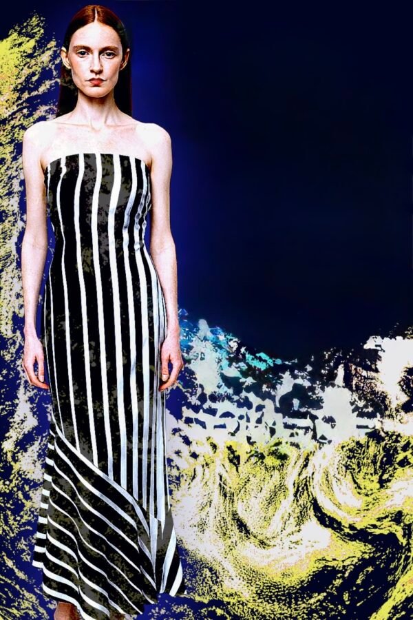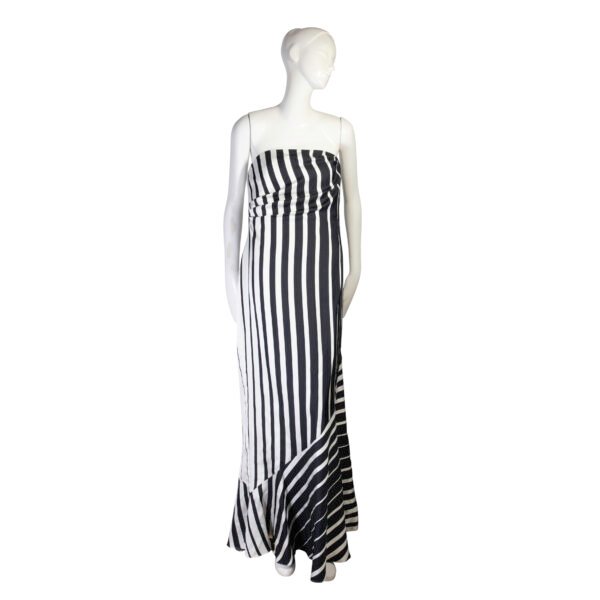 - Fitted bodice flowing into a subtly flared, floor-length hem