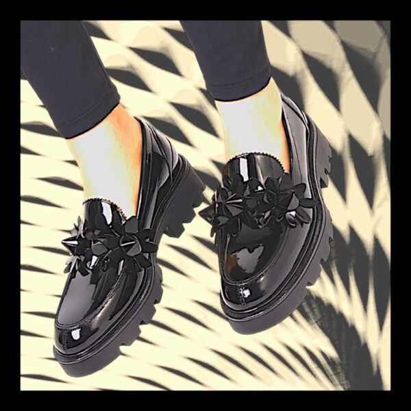 - Floral detailing, maxi spikes, and a serrated edge tongue for edgy,