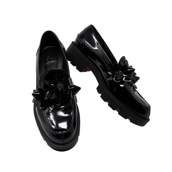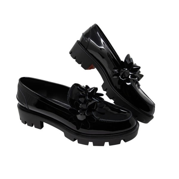 - Loafers crafted in sleek black patent calf leather for a bold, polished look