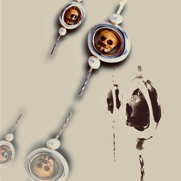 - Measurements: carved bone skulls approx. 12mm, pearls
