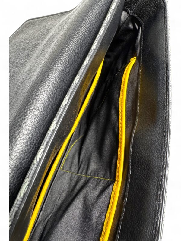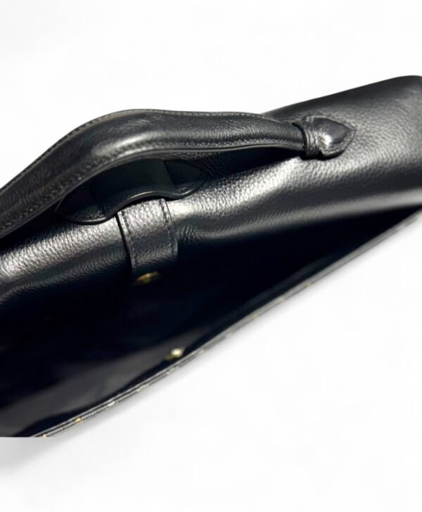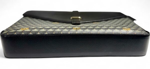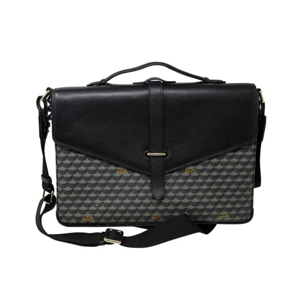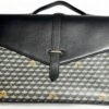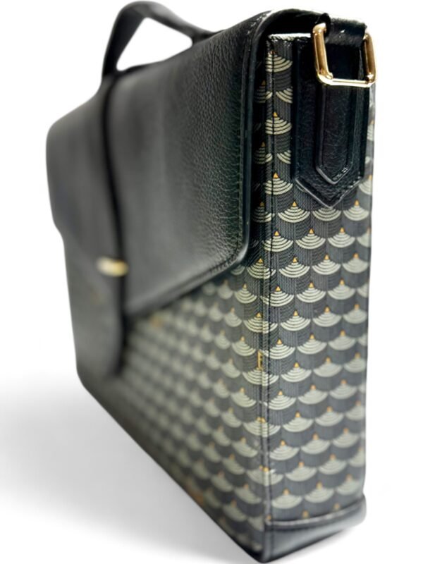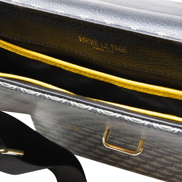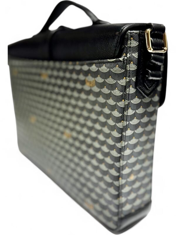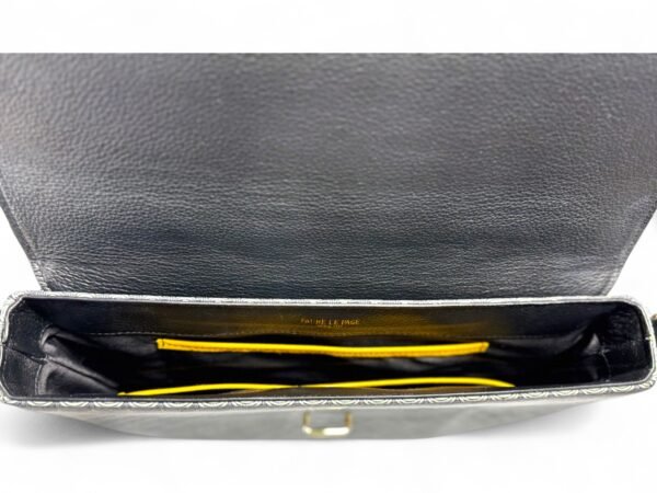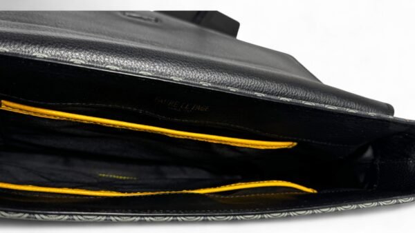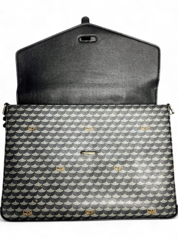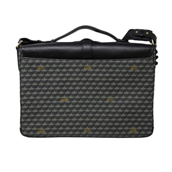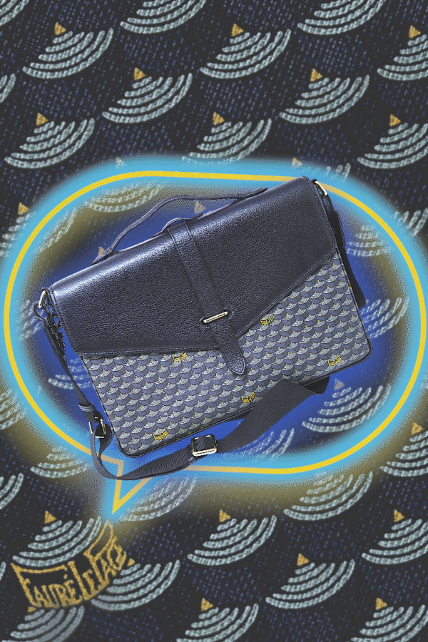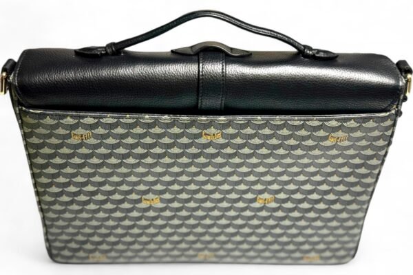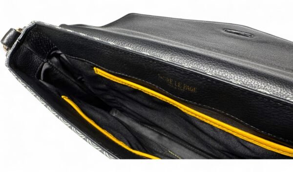 with elegant calfskin leather trim - Structured envelope-style flap and “à la Lyonnaise” screen-printing
