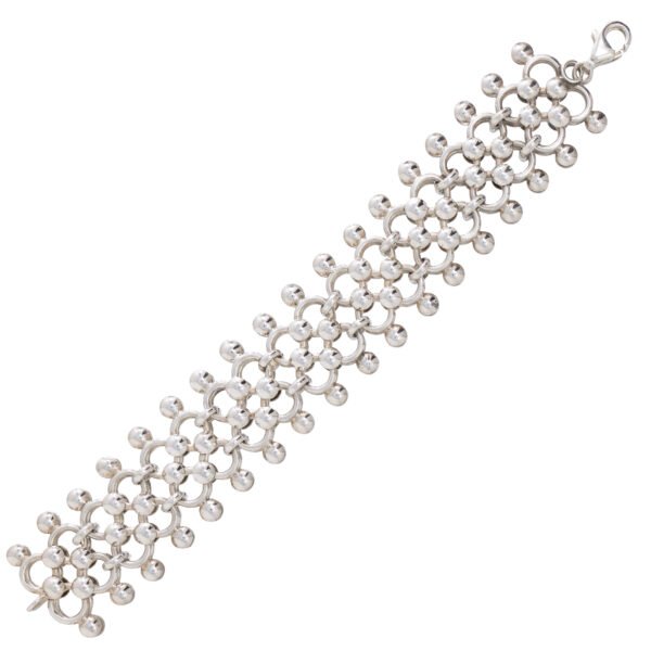 Collector’s Note: A striking example of Mexican modernist silver from the late 1960s–1970s, this bracelet reflects a moment when jewelry was conceived as wearable sculpture. Substantial yet fluid on the wrist, it embodies the craftsmanship and originality that continue to make mid-century Mexican silver so sought after. A timeless statement piece, curated for collectors who appreciate design with intention.