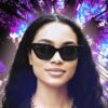 - Stylish cat-eye shape with signature rock studs across the brow and arms