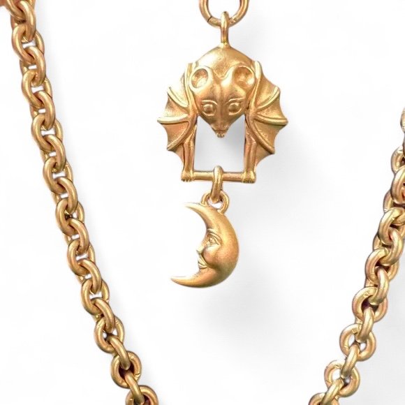 bat and half-moon charm 2.5” H × 1” W, 5″ strap drop - Made in Italy