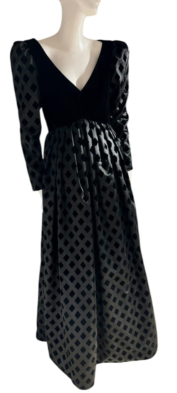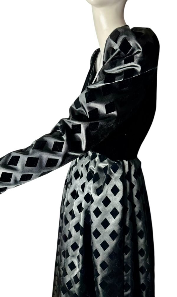 Collector’s Note: Adele Simpson was one of the most influential American designers of the 20th century, known for blending practicality with couture-inspired detail. This gown captures her timeless approach to evening wear, appealing to collectors who value American fashion heritage.