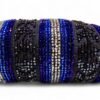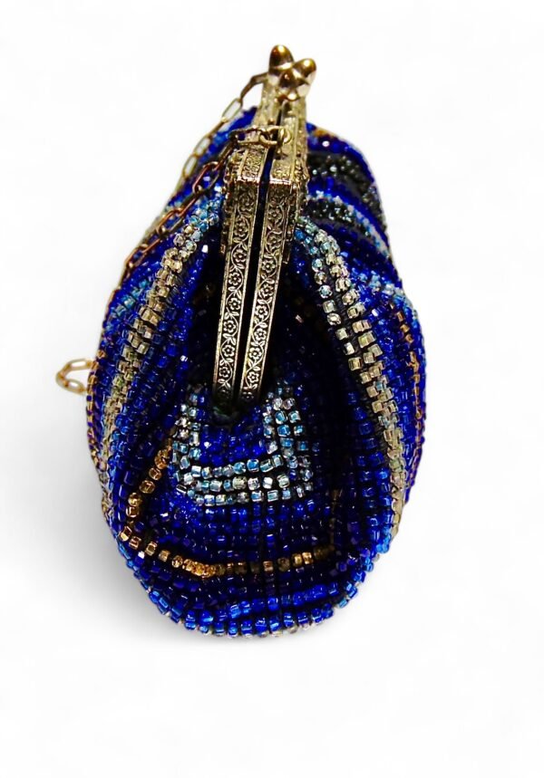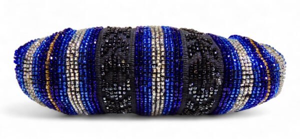 - Intricate blue and black glass beadwork over a silver plate frame