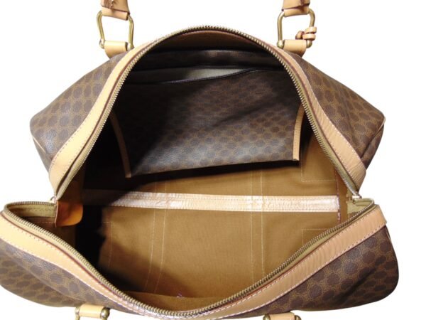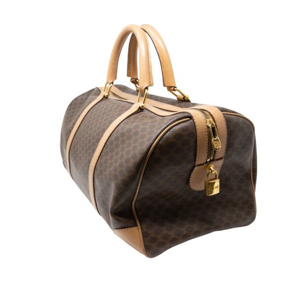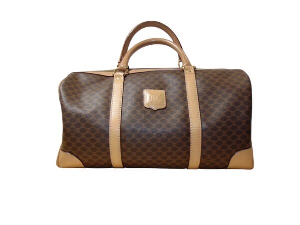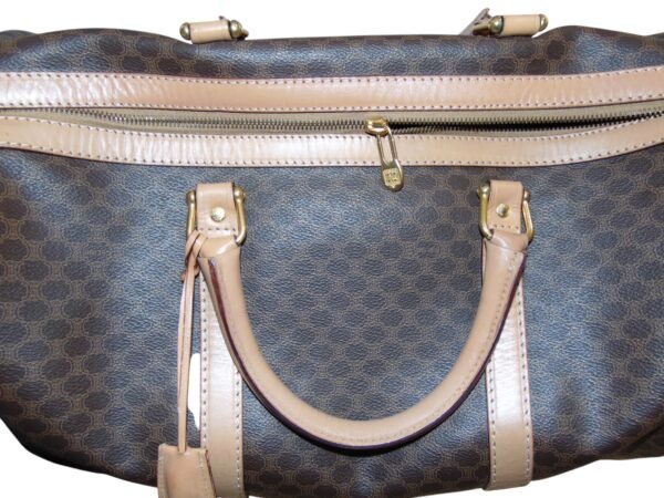 - Bag in classic duffel style with brown and tan color way