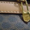 - Material: brass hardware, fabric, leather, PVC-coated canvas