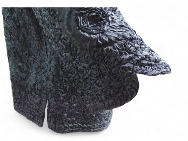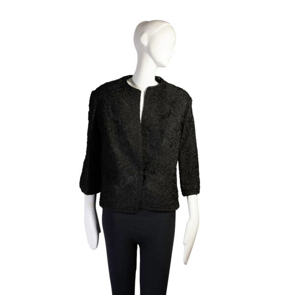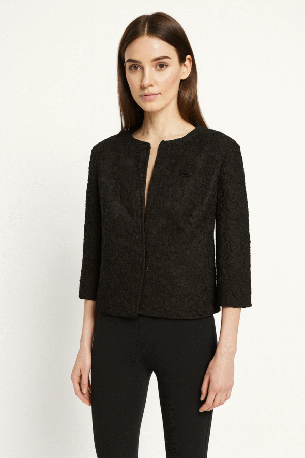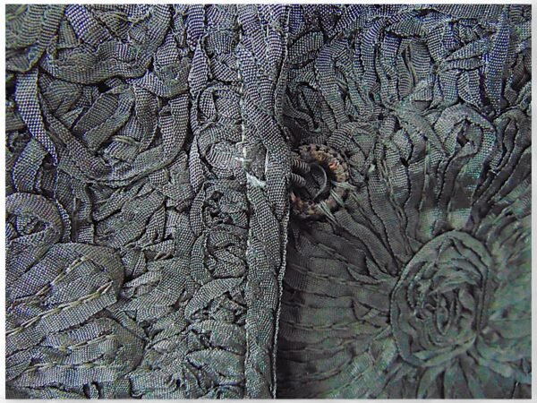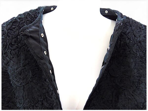 Collector’s Note: Ribbon knit jackets are increasingly rare survivors of mid-century women’s fashion. This piece reflects the period’s focus on delicate textures and cropped proportions, making it a unique addition for collectors of 1940s–50s style.