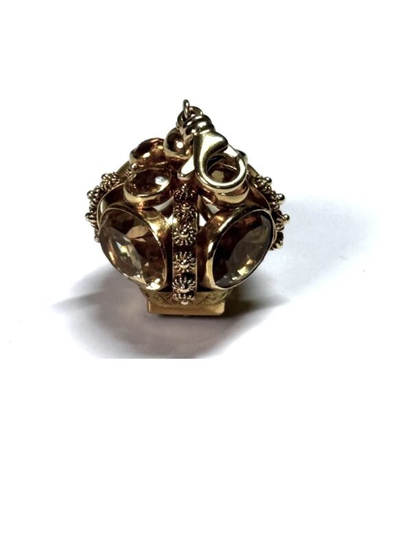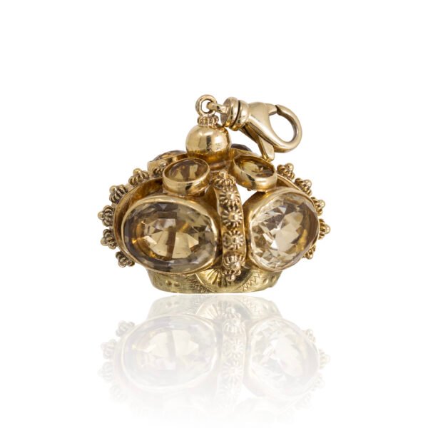 Collector’s note: This one-of-a-kind Etruscan Revival piece in excellent condition, is especially desirable due to its regal symbolism. The high gemstone weight and impeccable craftsmanship, make it not just an accessory, but a miniature treasure of wearable history.