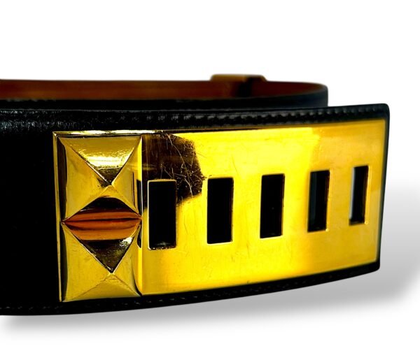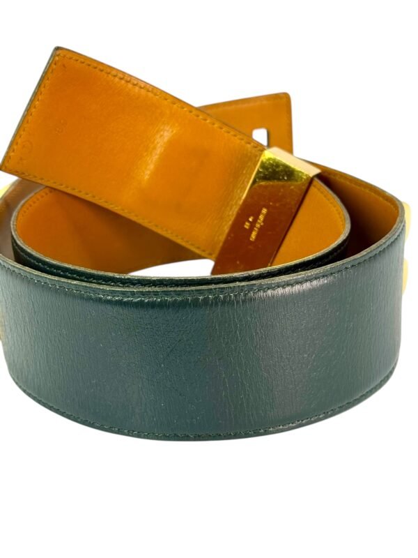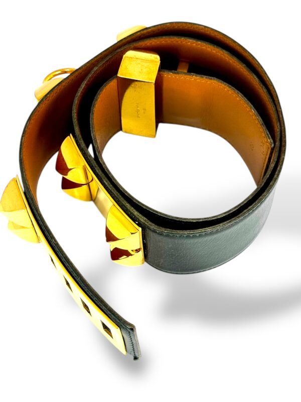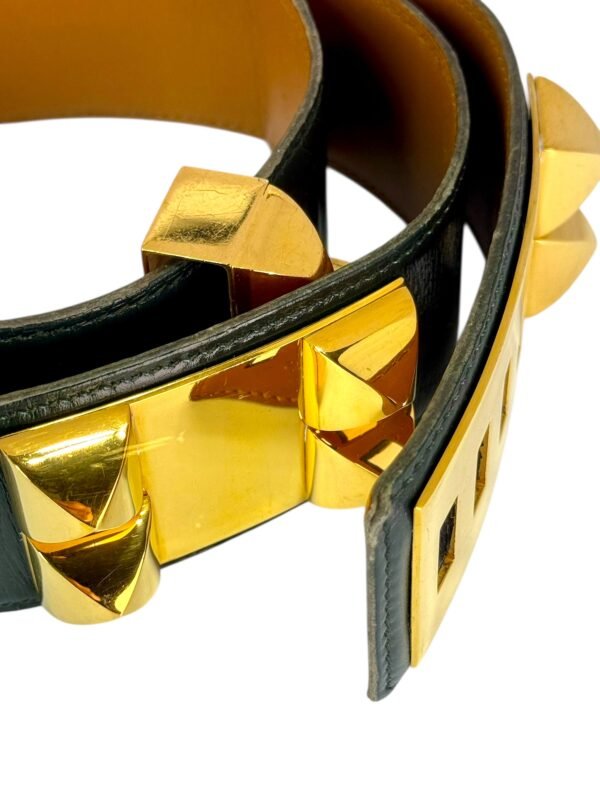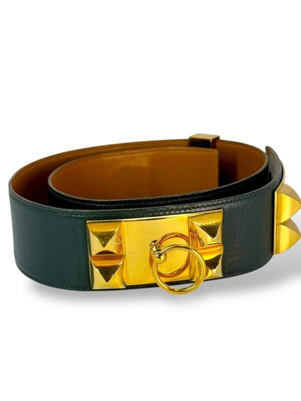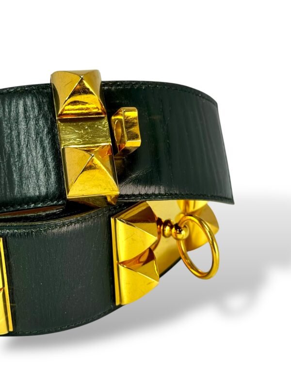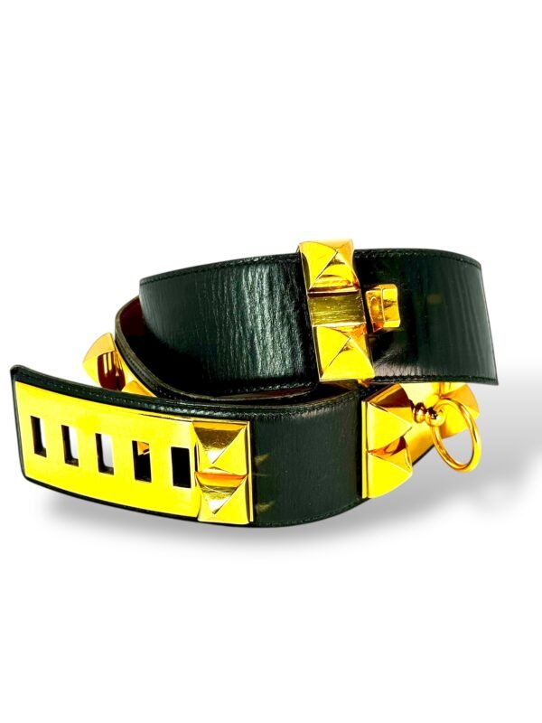 Collector’s Note: Introduced in the 1920s and reimagined through the decades, the Collier de Chien remains one of Hermès’ most enduring accessories. Its bold hardware has become a hallmark of power dressing. Vintage editions are valued for their rarity, especially in unusual colorways like this deep green. Owning one is akin to holding a piece of Hermès heritage, both wearable and collectible.