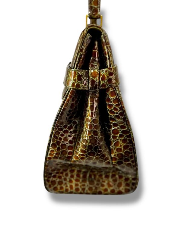- Material: brass hardware, embossed patent leather
