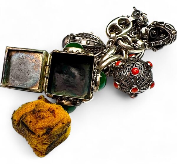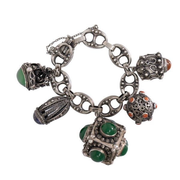 chalcedony, and carnelian - Measurements: 7” total length; links 0.75” × 0.5”; charms