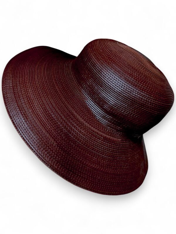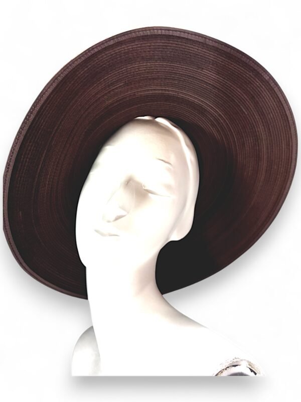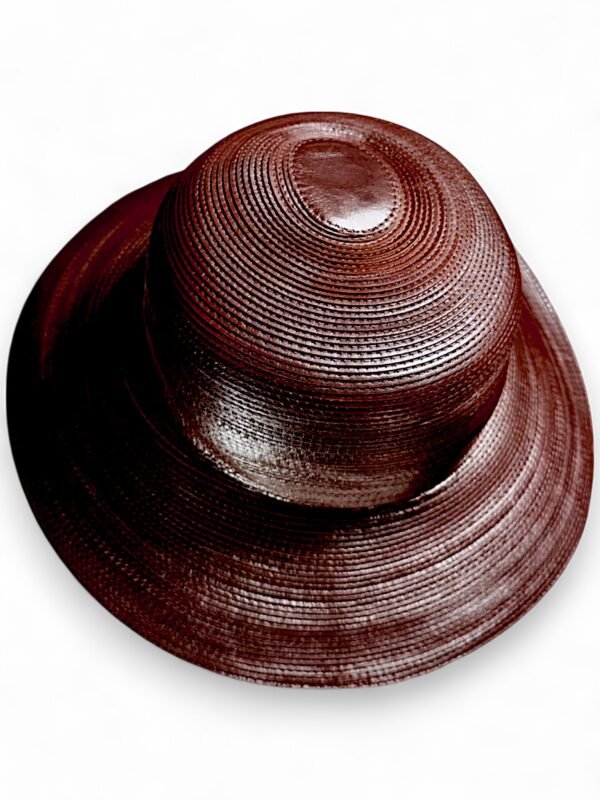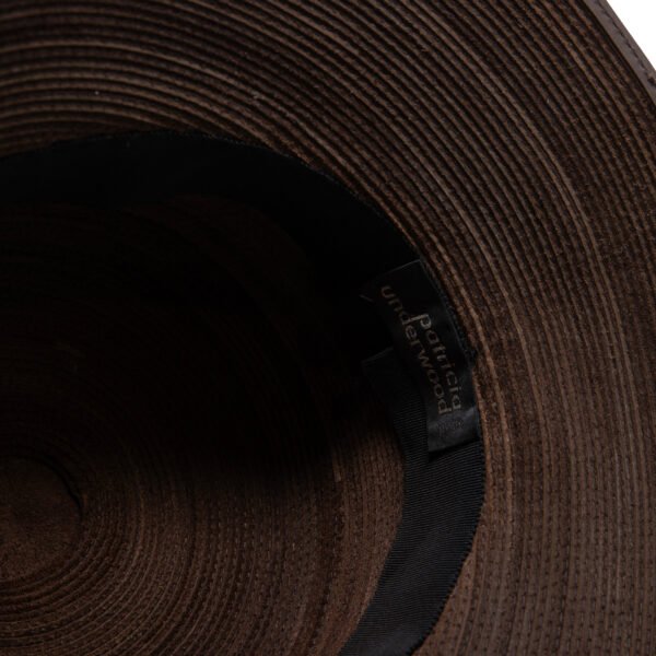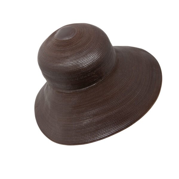 Collector’s note: Patricia Underwood became one of America’s most respected milliners during the 1980s and 1990s, her designs regularly gracing couture runways for designers like Oscar de la Renta and Calvin Klein. Known for her daring use of materials and impeccable construction, Underwood’s hats blur the line between accessory and sculpture. This leather design exemplifies her ability to merge avant-garde style with wearability, making it both a dramatic fashion statement and a collectible artifact of New York’s fashion scene. Underwood hats hold special appeal due to their limited production, couture-level quality, and association with iconic designers.