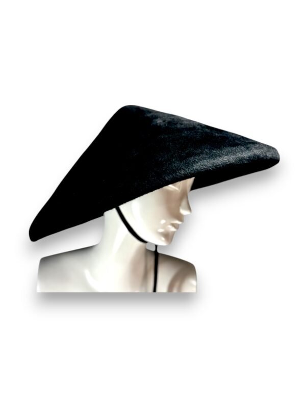 Collector’s note: Suzanne Couture designs are treasures because of their limited production and dramatic forms. This piece captures the brand’s unique ability to fuse cultural reference with couture technique, making it an exhibition-worthy hat and a jewel in any vintage fashion collection.