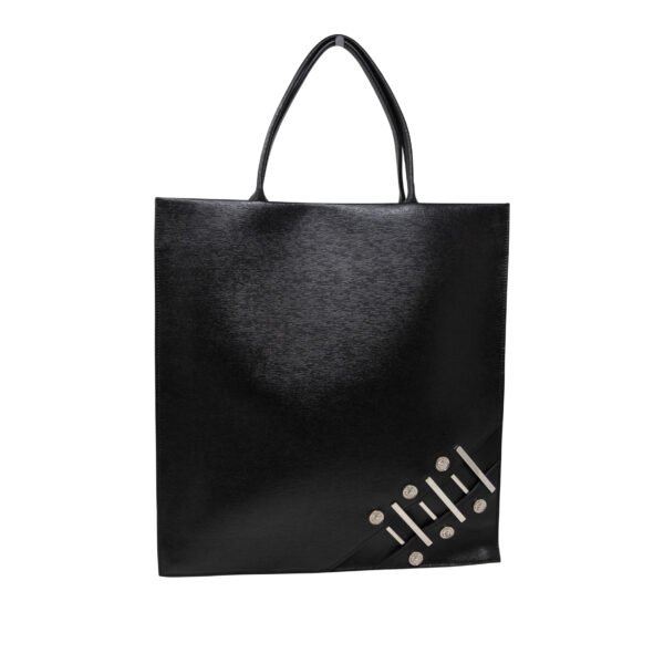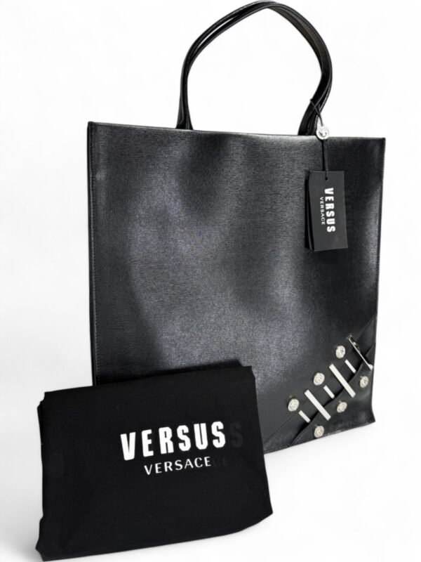 - Tote bag featuring classic Versus lion head hardware, a bold