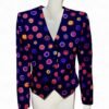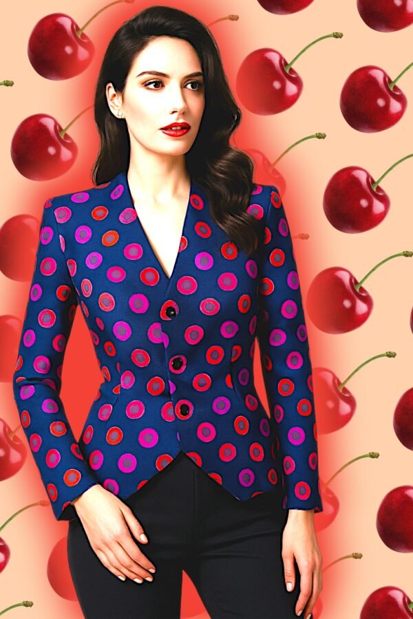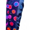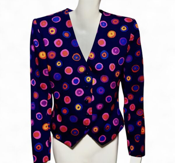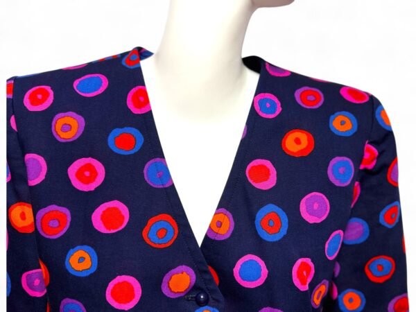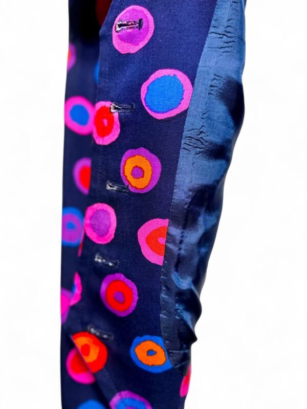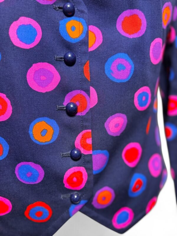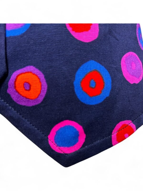 - Vibrant fusion of purple, pink, orange, and blue polka dots for an