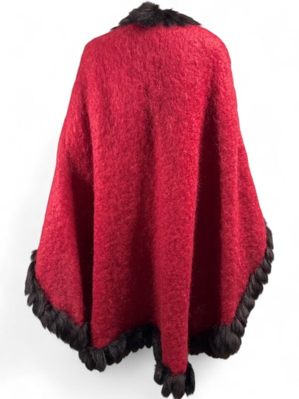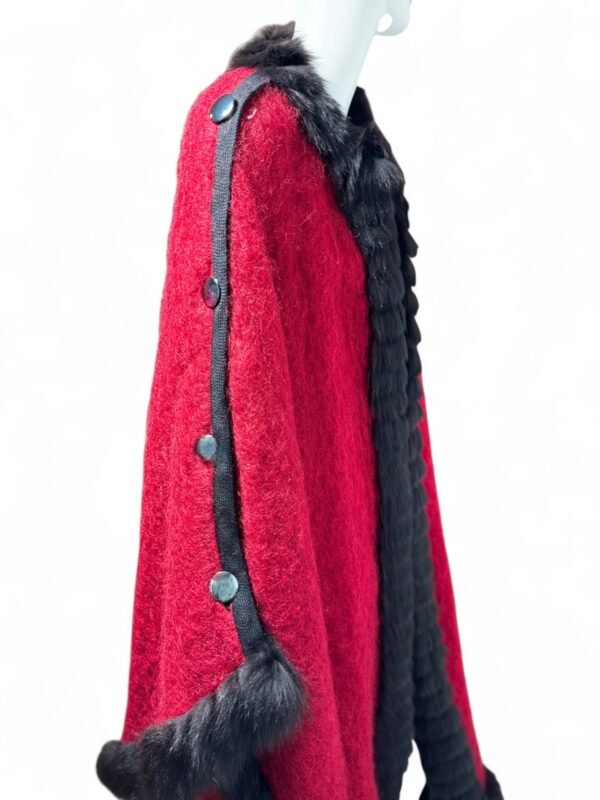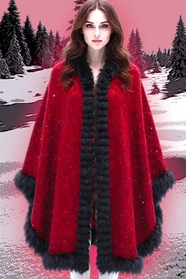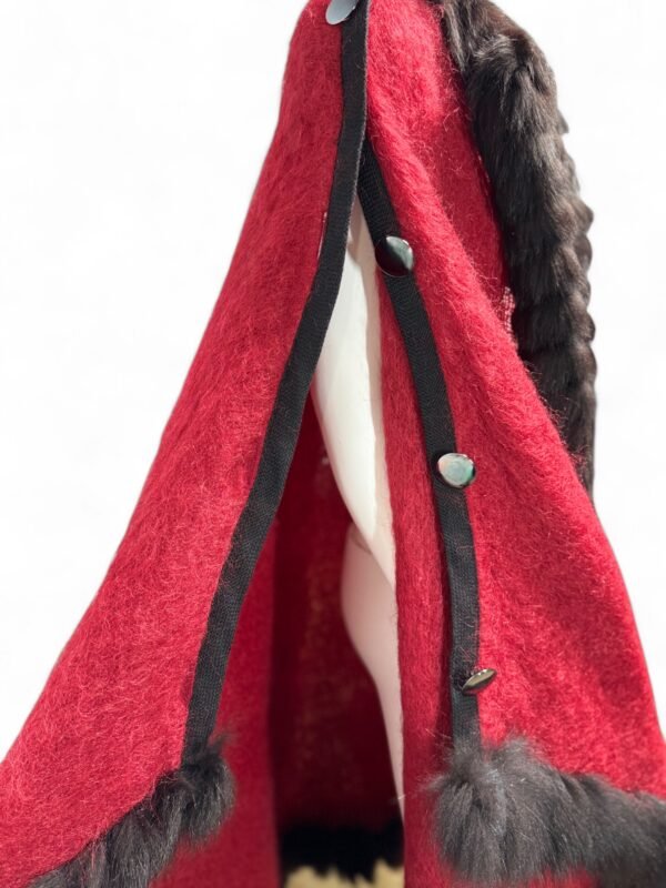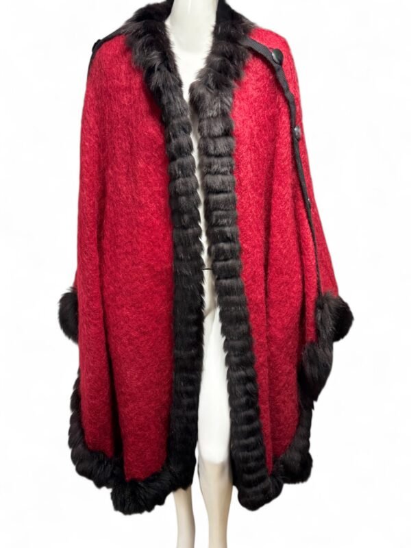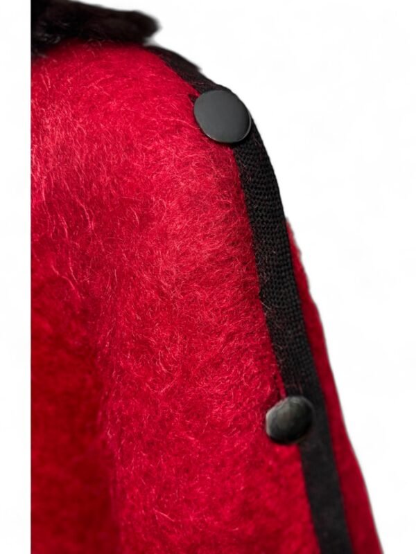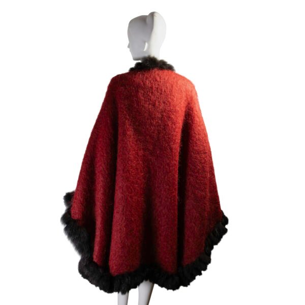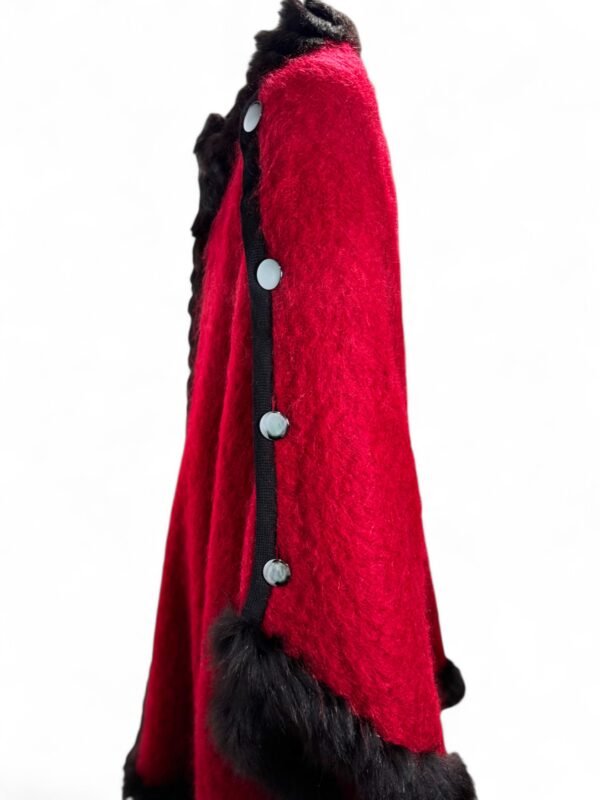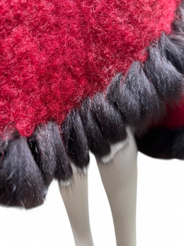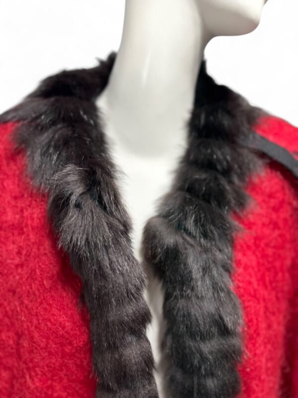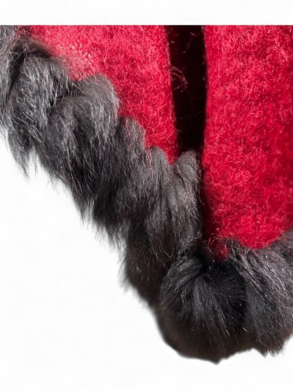- Material: luxurious red mohair, trimmed with brown fox fur